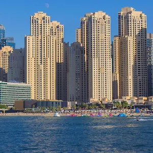Offering a sundeck, a shared lounge, and recreational facilities, the 43-storey Hilton Dubai Walk Hotel lies in a shopping area of Dubai, 1.5 km from Dubai Marina Yacht Club and approximately a 25-minute walk from Dubai International Marine Club. Mediterranean cuisine plus a swimming pool are provided in the 4-star hotel, located in the vicinity of JBR Beach.